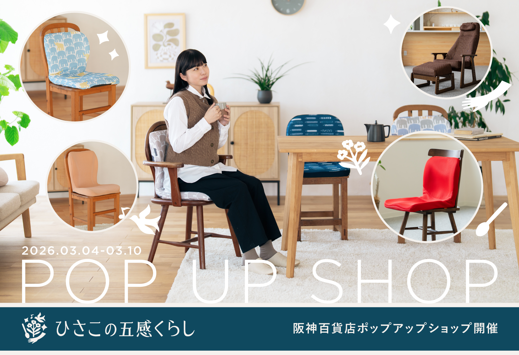 3月4日〜3月10日の期間で、阪神百貨店3階イベントウエスト①にて「ひさこの五感ぐらしポップアップショップ」を開催いたします!