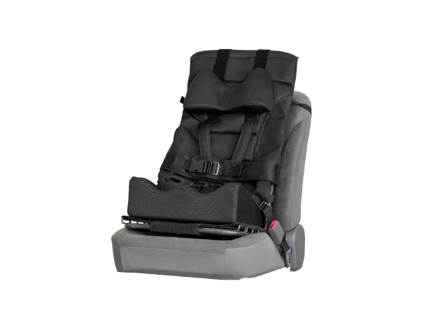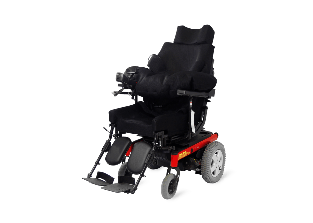 電動車いすベースの座位保持装置。長時間楽に姿勢を保つことができるので、操作性が安定しより安全に走行することができます。