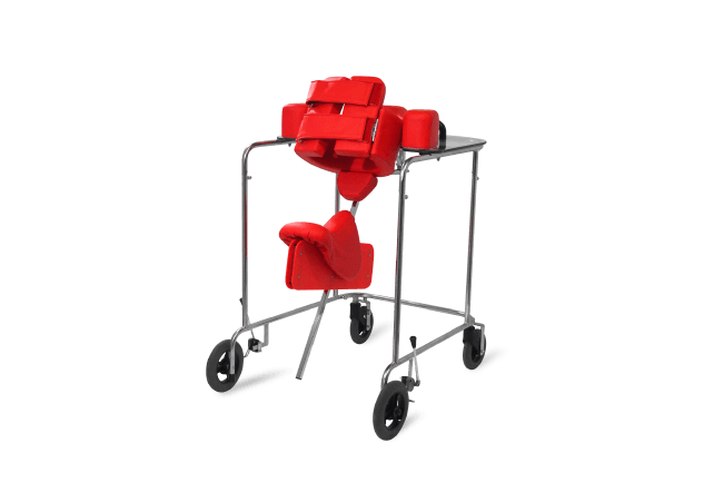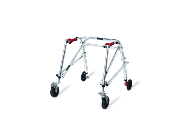 後方から支持することで股関節の伸展位に保ちやすくして足を前に運ぶことを促すタイプの歩行器。